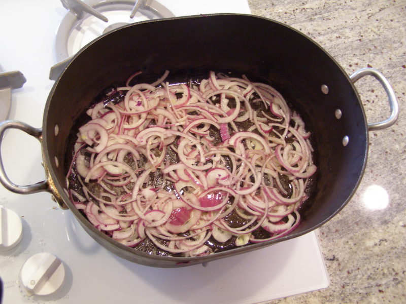 Next, I reduced the amount of red wine that the recipe called for and added a bit of chicken stock, hoping to tame the pungency of the braising liquid.