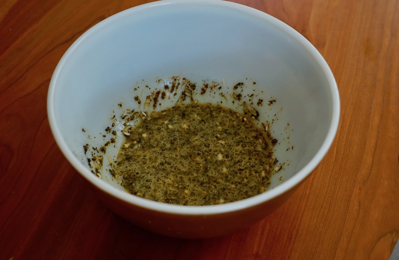 I mixed the egg, seasonings, and rice for the meatballs together before adding the two types of ground meat. Once I put the meat in with this flavored binder, it didn’t take long to incorporate the seasonings.