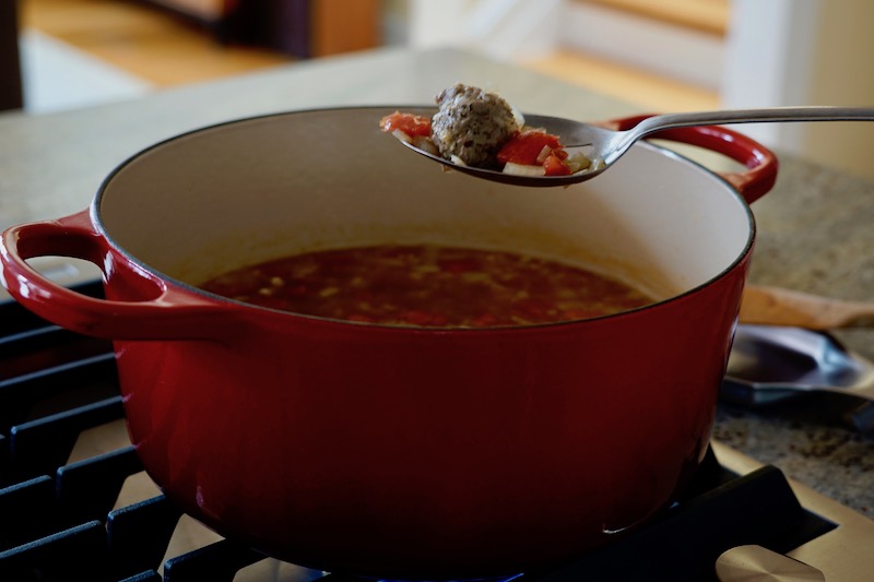 Once the meatballs have been par-cooked, putting together the rest of the soup is quite easy.