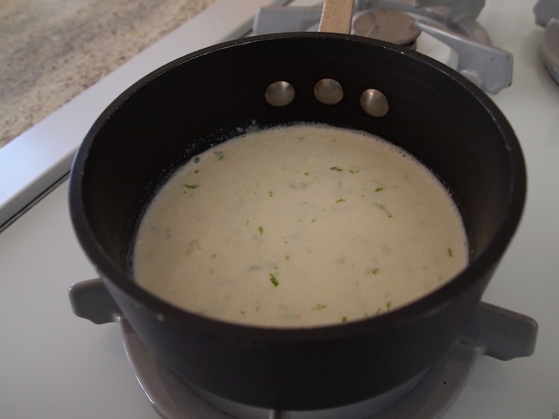 The lime juice and zest heat up along with the cream.
