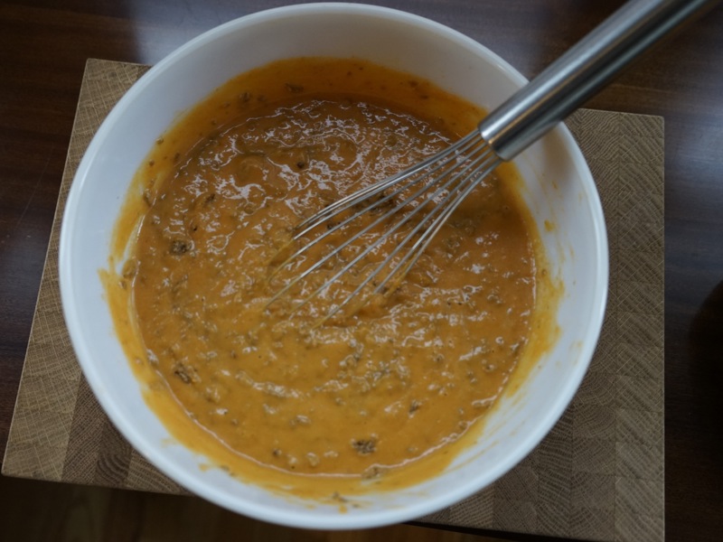 - Add bran cereal to pumpkin mixture, stirring well to combine and allow to soak for 15 minutes.