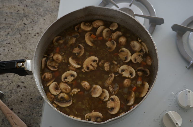 I increased the amount of garlic and added dried thyme to the cooking soup and decided to hold the mushrooms back until later in the cooking time.