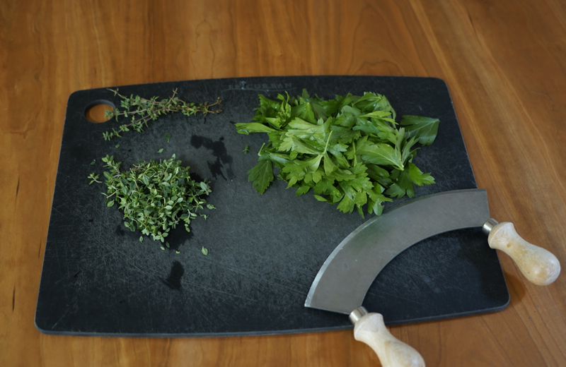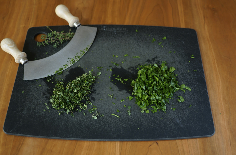 - When the soup is near its finished cooking time, finely chop the parsley and thyme and transfer to small bowl. Add the lime zest and lime juice and stir to combine. Set this herb mixture aside to use later.
