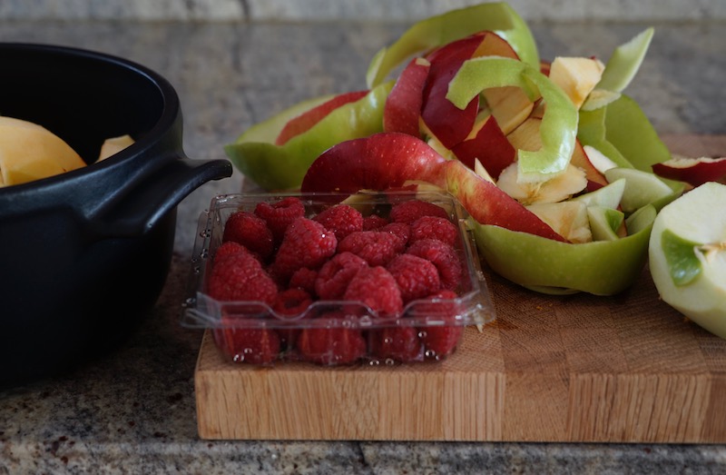 - Add raspberries (except those reserved for garnish) to apple mixture and stir well.