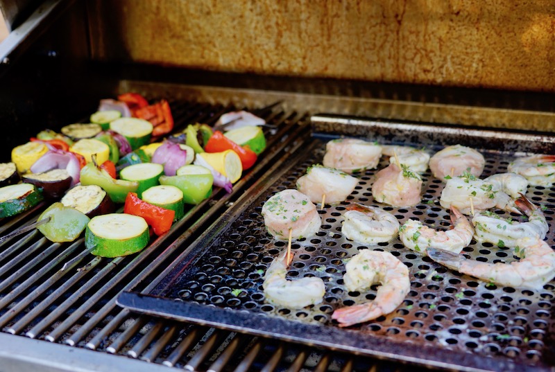During the summer grilling outside becomes a regular part of our cooking repertoire. There’s no sense in heating up the kitchen when you can sit on the deck and enjoy the sunset and a cool drink while the barbecue makes its magic happen. And when the grill can take on both seafood and fresh summer vegetables, it’s even more of a winner.