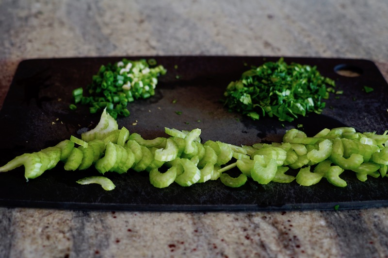 - 2 celery stalks sliced thinly on the diagonal