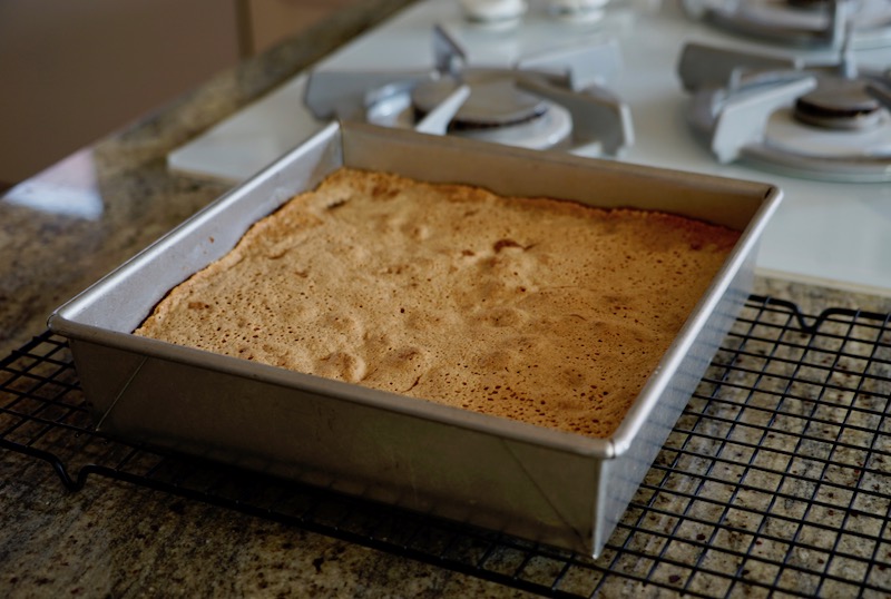 - Bake the cake for 1 hour and 10 minutes. If you remember, rotate the pan halfway through. (I forgot and it seemed ok.) Test with a toothpick in the center to see if it comes out clean. (It may need another 5-10 minutes, depending on your oven.)