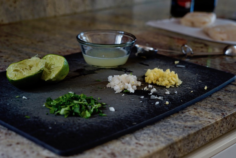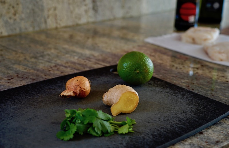 The way this sauce both flavors the baking fillets and accents the completed dish is remarkable. The mild acid of the lime counterbalances the salt of the soy, and the minced ginger, shallot, and cilantro round out the flavor.