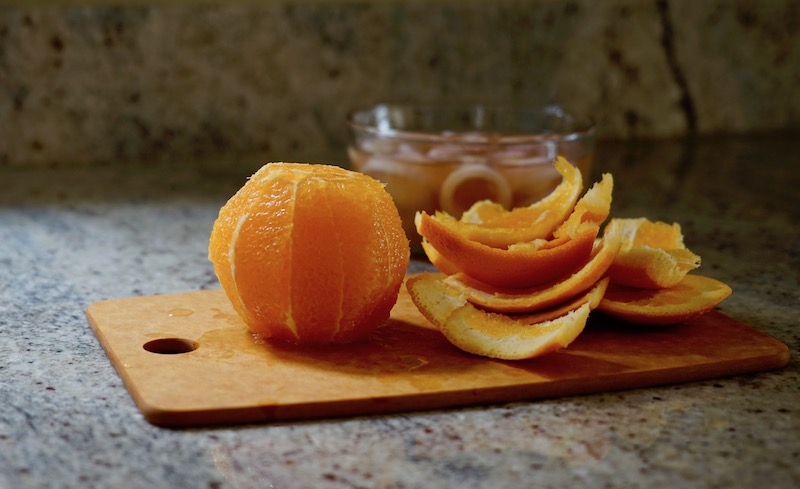- Remove peel and white pith from outside of oranges, using a sharp knife. Over a medium bowl, cut the oranges between their membranes, freeing the segments. Let any juice that falls accumulate in the bowl and place segments in bowl as they are done.