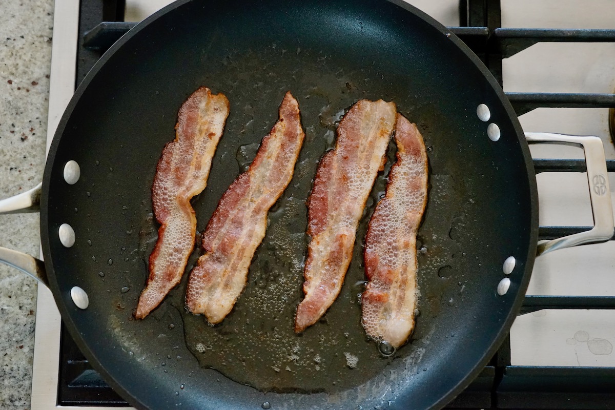 - 4 bacon slices fried until crispy, drained on paper towels, broken into pieces