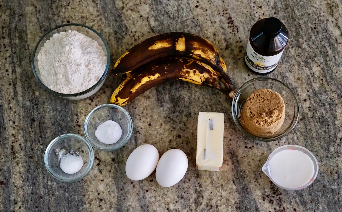 - 1-1 ¼ cups mashed banana --about 3 very ripe bananas