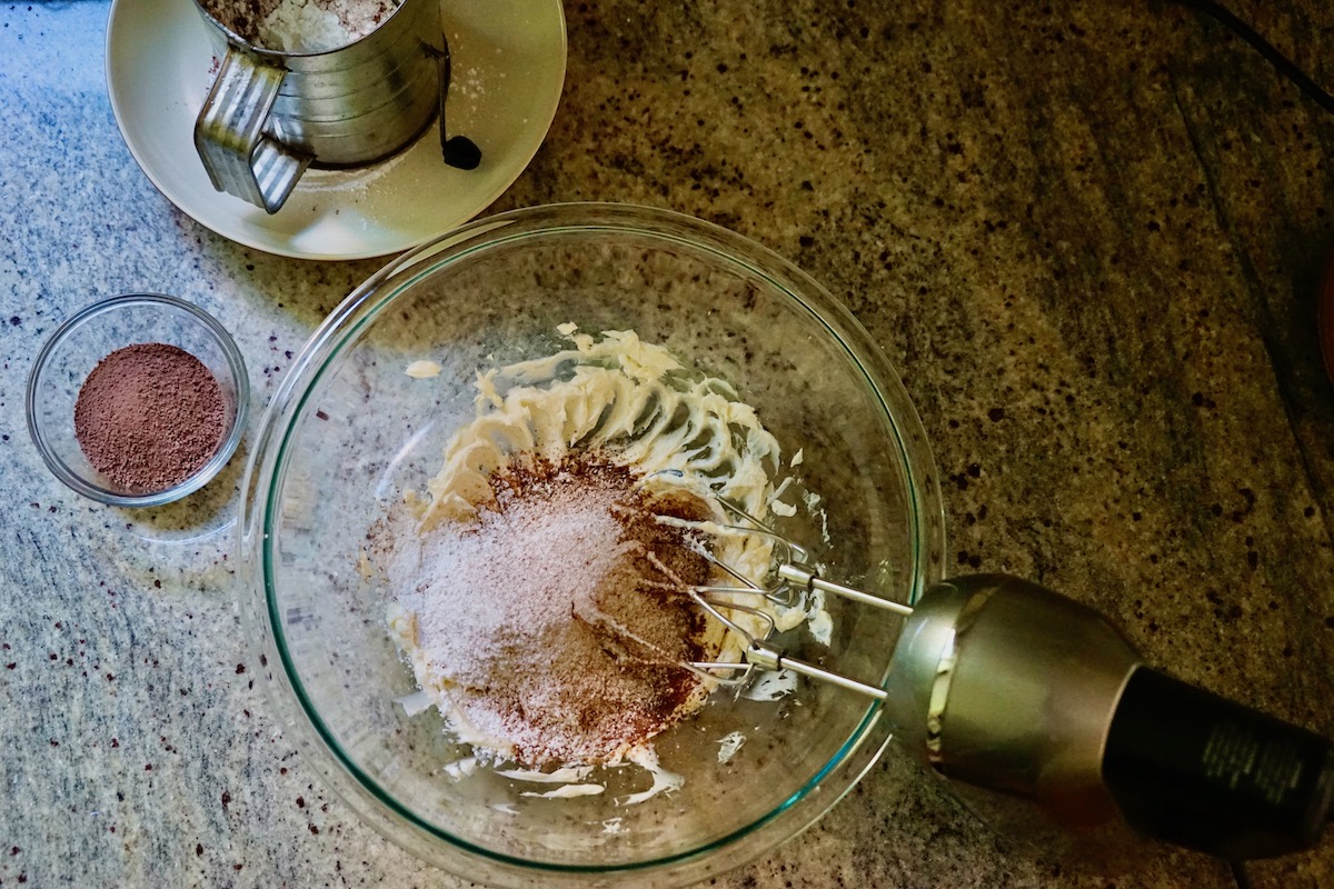 - Beat the butter and cream cheese in a large bowl at medium low speed with a hand mixer (or use a stand mixer with its paddle attachment). Scrape the bowl with a flexible spatula and add the vanilla extract and the salt, beating to combine them with the butter-cream cheese mixture. Slowly add the sifted confectioners’ sugar and cocoa powder mixture to butter-cream cheese mixture and beat until completely combined. Use the spatula to scrape the sides often. Add the chocolate malt mix powder and beat for an additional 30 seconds until thoroughly incorporated.