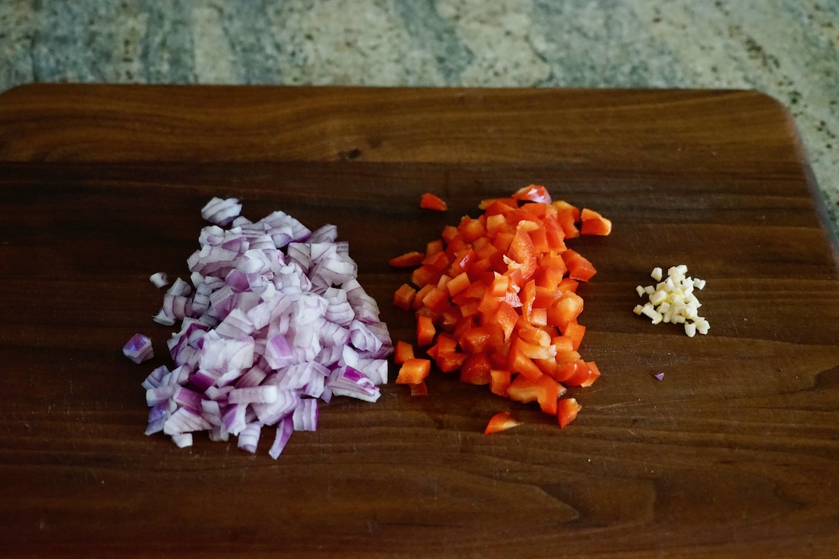 - 1/2 large red bell pepper diced (about 3/4 cup)